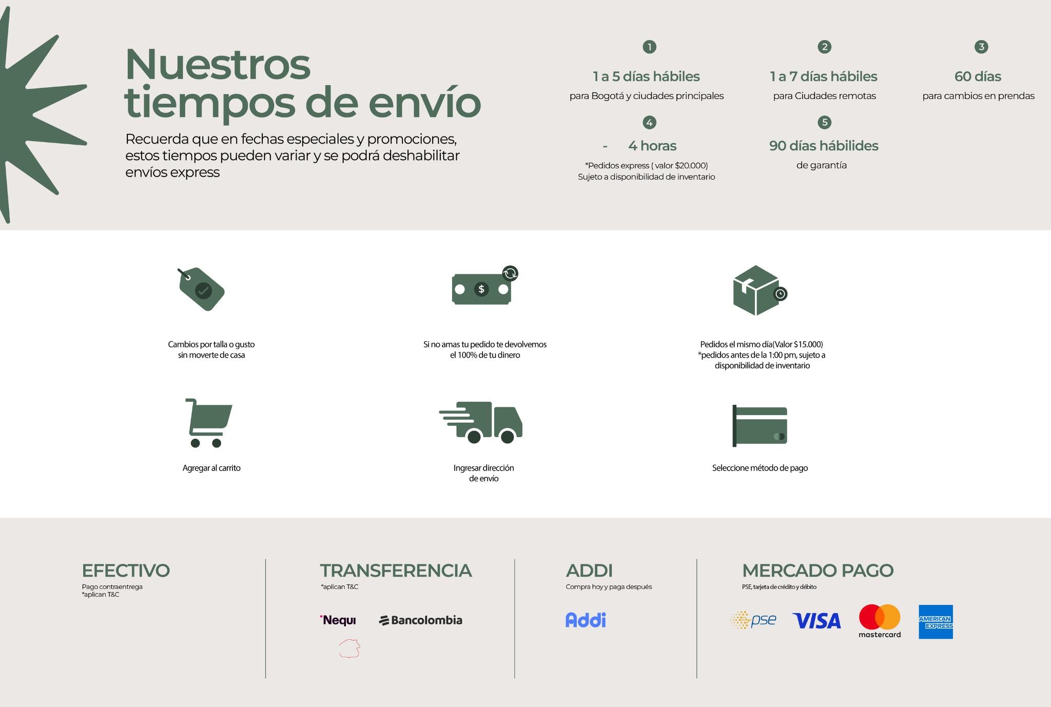 - Tarjetas de crédito: Visa, Dinners, Master Card y American Express.