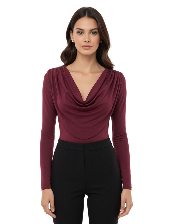 Body Escote Asimétrico Manga Bombacha - Safari Vino