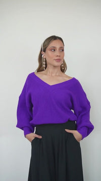 Nuestro saco de cuello en V tejido en color morado es una prenda elegante y versátil que te hará destacar en cualquier ocasión. El tejido de alta calidad garantiza comodidad y durabilidad, mientras que el diseño favorecedor realza tu figura y aporta un toque de sofisticación.