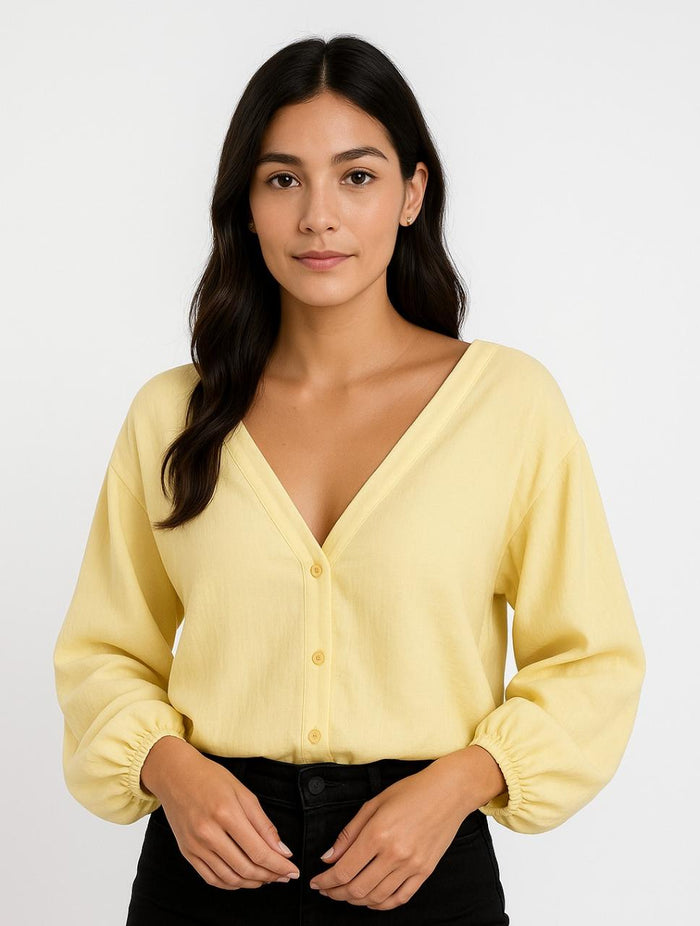 Blusa mujer Escote V Manga Bombacha - Ocaso