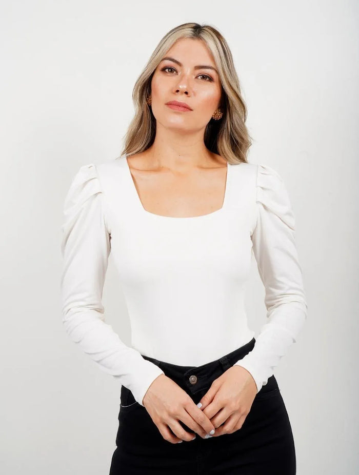 Body para Mujer Escote Cuadrado Manga Bombacha - Bianco