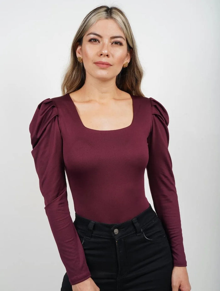 Blusa Para Mujer Vino Manga Larga y Escote Recto - The Supreme Vino