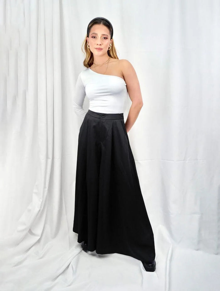 Pantalón para Mujer Negro Tipo Palazzo Tiro Alto - Saal Negro