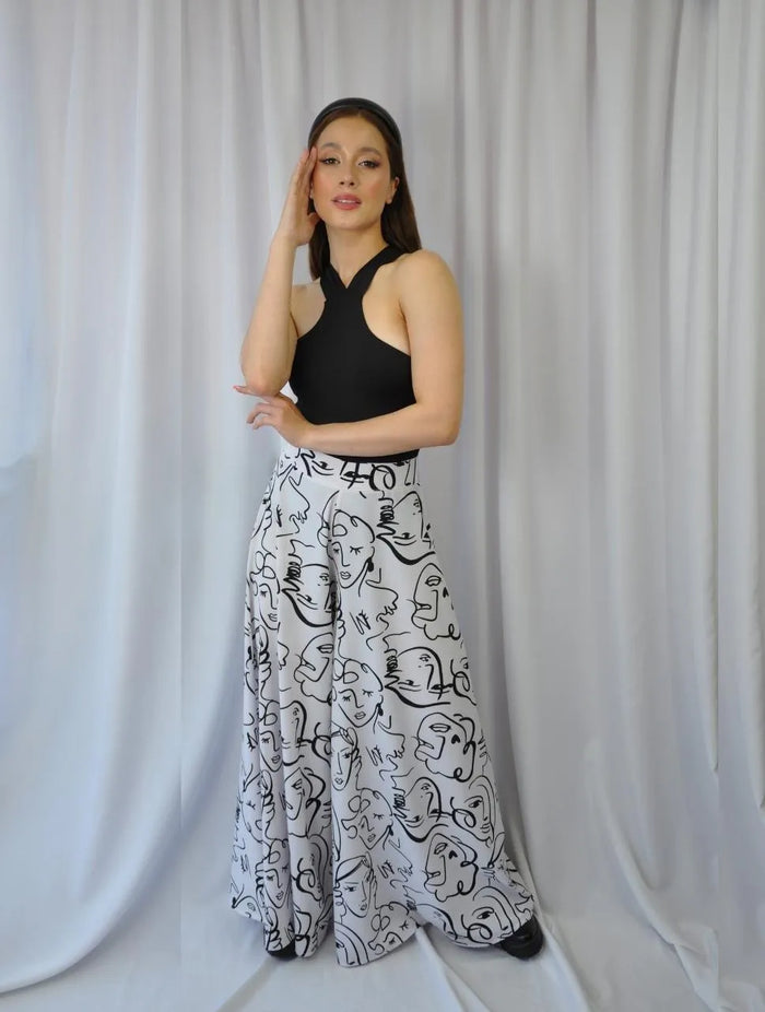 Pantalón para Mujer Blanco Estampado Tipo Palazzo Tiro Alto - Praga Blanco